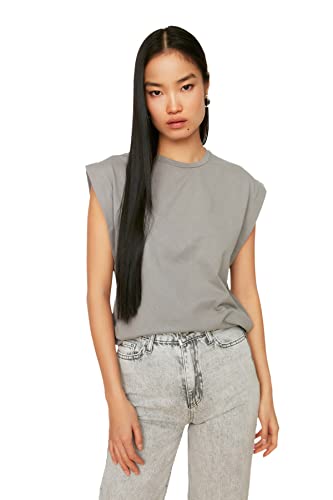 Trendyol T- Shirt Gris sans Manches, Femme Report This