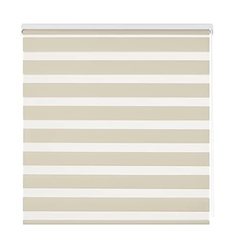 Estoralis | Vera | Store Enrouleur Jour Nuit Moderne | Double Tissu Uni | Beige | 125 x 180 cm. (Largeur/Hauteur) Taille du Tissu 122 x 175 cm. | Stores pour fenêtres et Portes