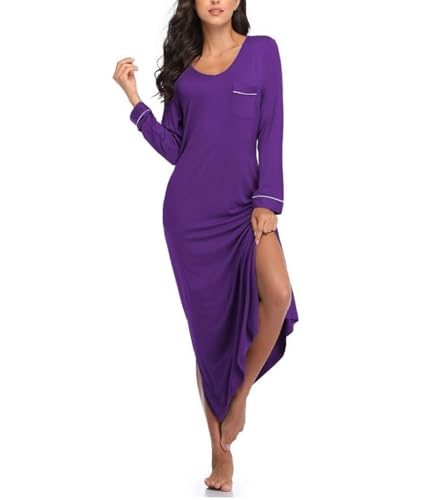 COLORFULLEAF Chemise de nuit à manches longues pour femme - Col en V doux - Nuisette pour femme - Chemise de nuit pour femme, lilas, XL Report This