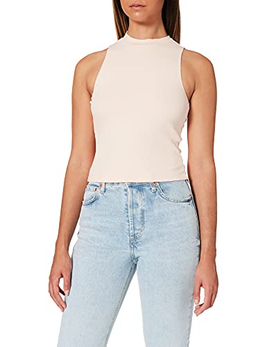 NA-KD Ribbed Jersey Top Chemise, Rose, L Femme