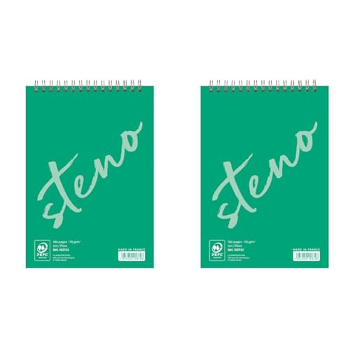 Calligraphe 15372C Un Bloc à Spirale Sténo Vert (une Marque de Clairefontaine) - A5 14,8x21 cm - 90 Feuilles Unies Blanches - Papier 70 g (Lot de 2)