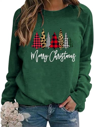WIEIYM Pull de Noël pour femme - Imprimé arbre de Noël - Col rond - Manches longues - Pull de Noël décontracté - Sweat-shirt de Noël, G-green, S Report This