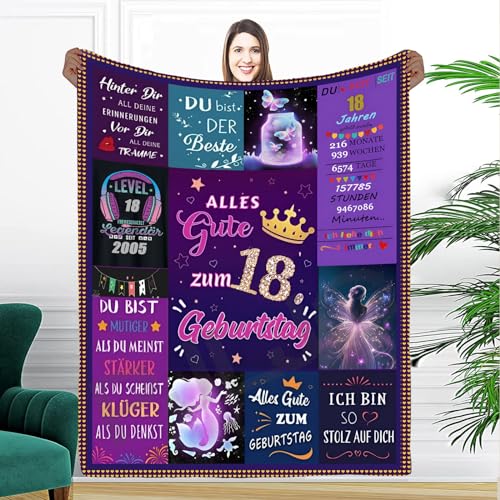 PJLJC Cadeau d'anniversaire fille 18 ans, Couverture en flanelle personnalisée, Violet, 150 x 200 cm Report This