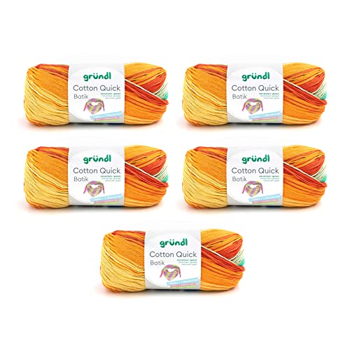 Gründl Laine Cotton Quick Batik – laine fine pour le crochet avec dégradé de couleurs – brillante et respectueuse de la peau – 100% coton – 5 pelotes 100 g / 260 m – taille d’aiguille 3–4 Bleu-vert Report This