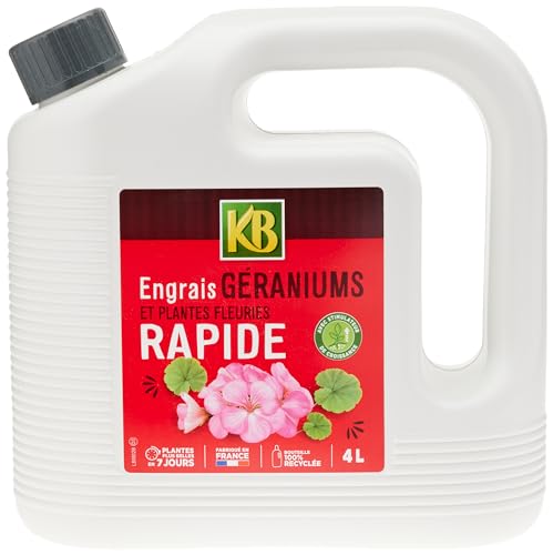 KB KBGER4N - Engrais Liquide Rapide Plantes Fleuries Géraniums, Vivaces 4 L - Plantes Plus Belles en 7 Jours - avec stimulateur de Croissance - Jusqu'à 568 L de Solution diluée - Fabriqué en France Report This