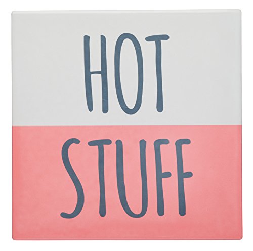 KitchenCraft Dessous de plat carré en céramique "Hot Stuff" avec dos en liège, 2 x 2 cm (8") - Rouge / Blanc