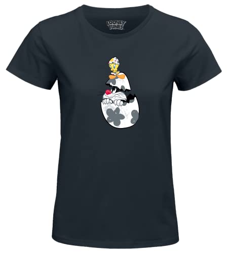 cotton division Looney Tunes « Catch Tweety & Sylvester with Eggs » WOLOONETS097 T-Shirt Femme, Navy, Taille XL