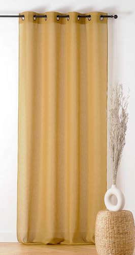 LINDER - Voilage Bouclette - Finition Œillets Couleur Canon de Fusil - Coloris Miel - 140x240cm - 100% Polyester - Collection Boucline Report This