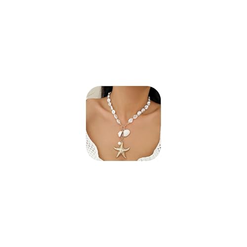 YANCHUN Chaîne étoile de mer plage charme collier pour femme Boho Été Coquillage Étoile de mer Colliers d'été Tenues Plage Vacances Essentiels, Métal, Pas de gemme Report This