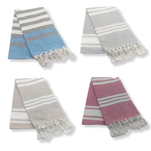 Drap de plage Fouta avec franges – XXL 100 cm x 180 cm – 100 % coton – séchage rapide – idéal aussi comme serviette sauna, détente et bien-être (4, couleur 4) Report This