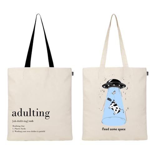 Eco Right Aesthetic Canvas Tote Bag for Women, Cute, Trendy and Reusable, Cotton Bags for School, Shopping, Gym, Library and Beach, Perfect for Groceries