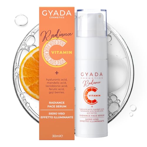 GYADA COSMETICS, Sérum Visage Éclaircissant Éclat, Hydratant, Contrecarre les Signes de Vieillissement, Décoloration de la Peau, Rides d’Expression, Excès de Sébum, À Base de Vitamine C, 30 ml
