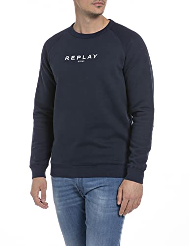 REPLAY Sweat-shirt pour hommes en mélange de coton, bleu 085 (bleu), S Report This