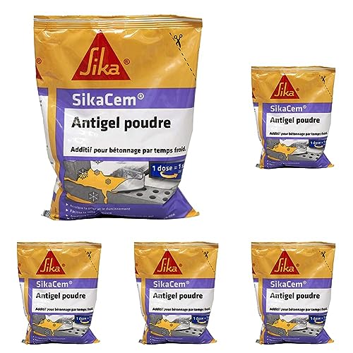 SikaCem Antigel Poudre, Additif pour bétonnage par temps froid, 700g, Beige (Lot de 5)