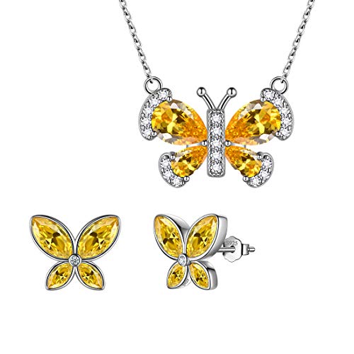 Bijoux pour femme avec 12 pierres de naissance papillon en argent sterling 925 avec cristaux d'animaux minimalistes, Argent, Citrine Report This
