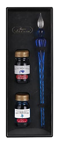 Jacques Herbin 29313T - Coffret avec 2 encres10 ml, Bleu des profondeurs, et Bleu pervenche et une plume de verre outremer Fabriqué en France Report This