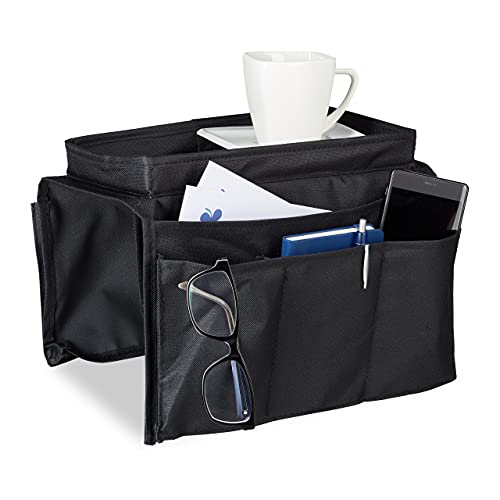 Relaxdays Organiseur canapé fauteuil pliable 6 poches de rangement accoudoir support HxlxP: 22x18x32 cm, noir, 22 x 18 x 32 cm