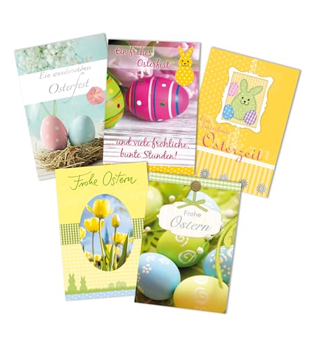 Perleberg Lot de 5 cartes de Pâques de qualité supérieure - 11,6 x 16,6 cm - Motif aléatoire - Idéal pour cadeaux en argent - Cartes de Pâques avec enveloppe