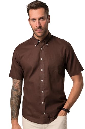JP 1880 Hommes Grandes Tailles L-8XL Chemise en Lin mélangé. Manches Courtes et col à Pointes boutonnées. Coupe Modern Fit. Marron pin L 782692110-L