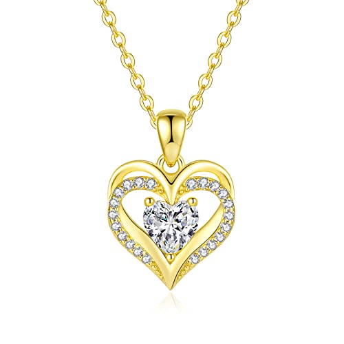 CDE Collier pour femme en forme de cœur en argent sterling 925 avec pierre de naissance - Pendentif en forme de cœur - Cadeau de Noël, Saint Valentin, fête des mères, mariage, anniversaire, femme,