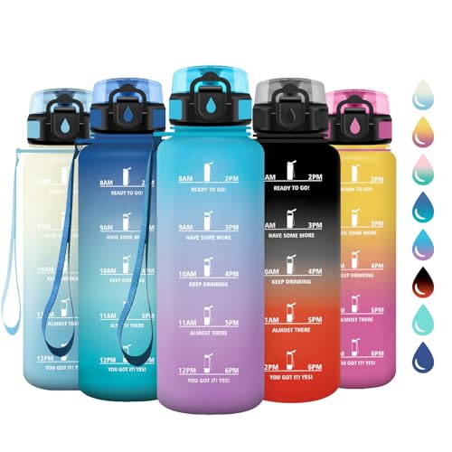 Bouteille d'eau 1.5L, Bouteille d'eau de Motivation avec Marqueur de Temps, Étanche et Réutilisable, Gourde avec Filtre sans BPA, Bouteille Réutilisable pour l'école, Sport, Bureau, Yoga, Camping Report This