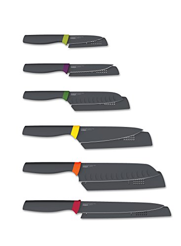 Joseph Joseph Elevate Ensemble de couteaux 6 pièces, lames en acier inoxydable, avec couteau dentelé et couteau de chef, étui de protection, Noir/Multicolore Report This