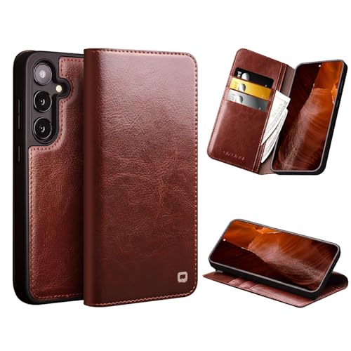 qichenlu Étui de protection à rabat en cuir véritable pour Galaxy S24 Plus - Style rétro - Marron - Cuir véritable - Avec compartiment pour cartes - Pour Samsung Galaxy S24 Plus Report This
