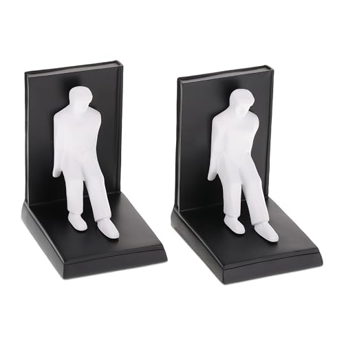 Relaxdays Lot de 2 Serre-Livres, Figurine Homme, HxLxP: 14,5x12x9,5 cm, décoratif, résine Artificielle, Noir - Blanc