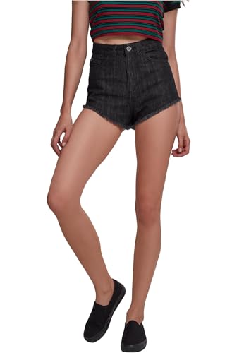Urban Classics Ladies Denim Hotpants Shorts, Black Washed, 28 Femme