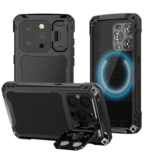 qichenlu Coque métallique en Aluminium extrêmement légère Compatible avec iPhone 15 Pro, avec MagSafe, Protection complète, Verre de Protection d'écran intégré, Coque extérieure à 360 degrés avec Sup