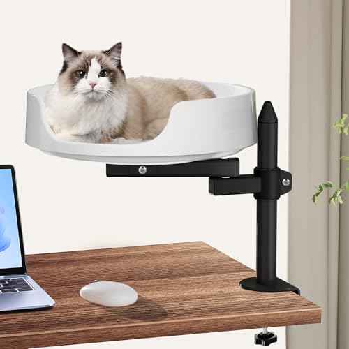 Lit pour chat réglable en hauteur pour bureau - Pivotant à 360° - Avec deux bras réglables - Coussin pour animaux de compagnie inclus Report This
