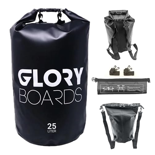 Glory Boards® Sac à dos étanche Dry Bag - Robuste, léger pour les voyages, la natation, avec bandoulière pour stand up paddle, plongée, kayak, rafting et camping - 25L - Noir Report This