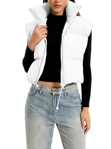 OYIGELZ Gilet matelassé tendance pour femme - Col montant - Fermeture éclair - Gilet rembourré rembourré, Blanc - W, XXL Report This