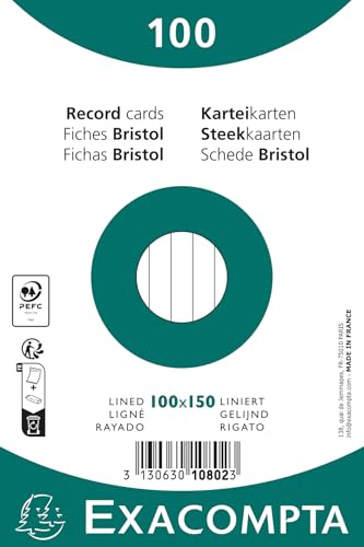 Exacompta - Réf. 10802X - Carton de 20 paquets de 100 fiches bristol lignées non perforées - sous film - compatibles avec imprimante jet d'encre, laser et photocopieur - format 100 x 150 mm - blanc