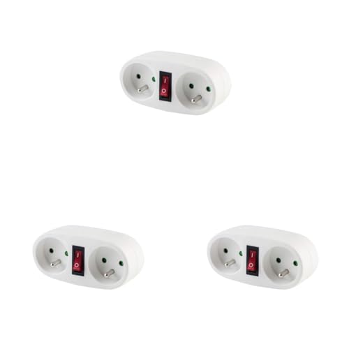 Biplite Domino 2x16A 3500W avec Interrupteur - Blanc - Chacon (Lot de 3)