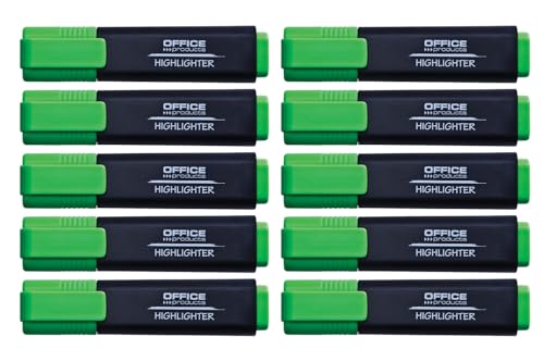 OFFICER PRODUCTS Lot de 10 surligneurs fluorescents - Couleur : vert - Encre non toxique - Pointe biseautée - Qualité supérieure - Épaisseur de trait : 1-5 mm 17055211-02