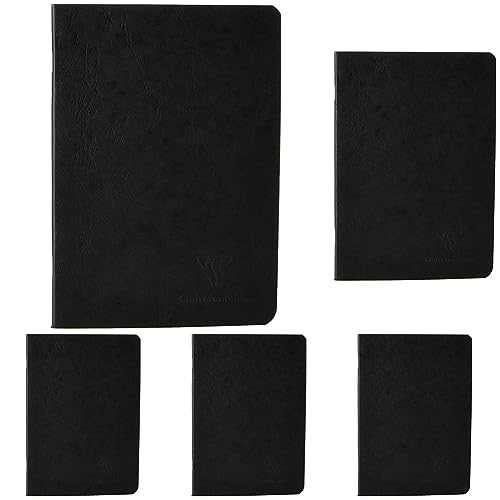 Clairefontaine 733101C Collection Age Bag Un Carnet Agrafé Noir - A5 14,8x21 cm - 96 Pages Unies Blanches - Papier 90 g - Couverture Carte Lustrée Grain Cuir (Lot de 5)