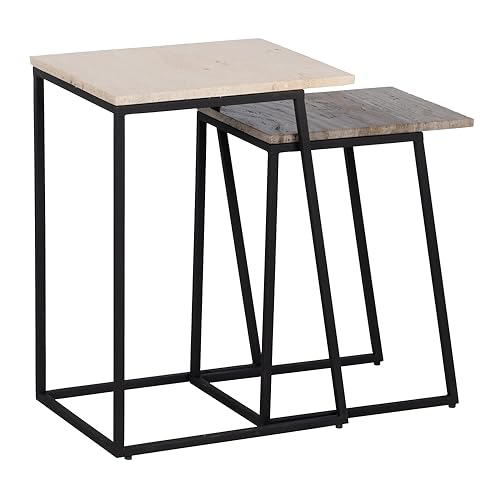 BigBuy Home Table d'appoint 45 x 35 x 63,5 cm Marron Crème Marbre Fer (2 unités)