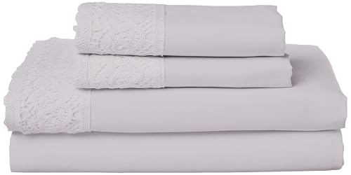 Modern Threads Includes Flat, Fitted Sheet with Deep Pockets, & Pillowcases Parure 4 pièces en Microfibre avec Dentelle crochetée, Gris Tourterelle, très Grand lit, King Report This