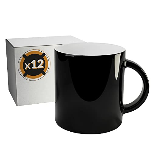 PixColor Lot de 12 tasses magiques de sublimation en céramique | Couleur noir brillant | Changement de couleur avec la chaleur | Boîte individuelle | 350 ml (11 oz) | Catégorie AAA | Cricut