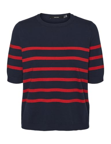 Vero Moda VMSABA Pull uni SS à col Rond GA Noos, Navy Blazer/Stripes : w. Fiery Red, XS Report This
