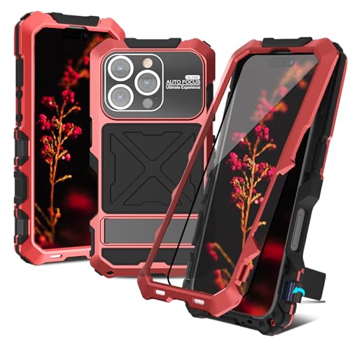 qichenlu Installation rapide sans vis - Coque d'extérieur compatible avec iPhone 14 Pro - Cadre en métal - Écran en verre trempé - Norme militaire - Résistant aux chocs à 360 ° - Rouge