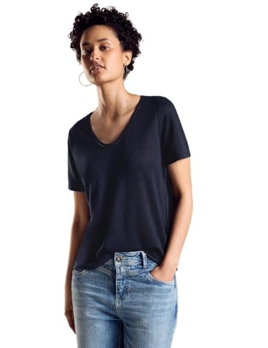 STREET ONE A321616 T-Shirt Aspect Lin, Bleu Foncé, 38 Femmes