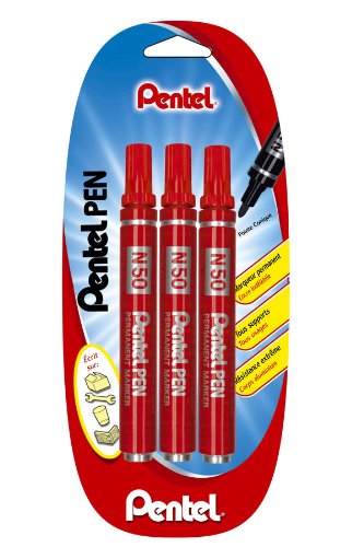 Pentel N50 Lot de 3 Marqueurs Permanent Pointe Conique Rouge Report This
