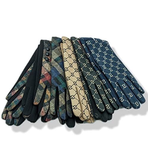 Saturnali Gants élégants pour femme Touch à carreaux, gris, Taille unique Report This