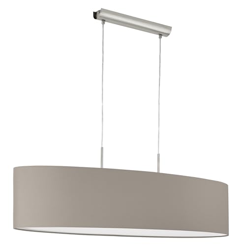 Eglo Suspension luminaire Pasteri, lustre suspendu en acier et textile, couleur nickel mat, taupe, lampe de salon et de salle à manger, douille E27, 100 cm